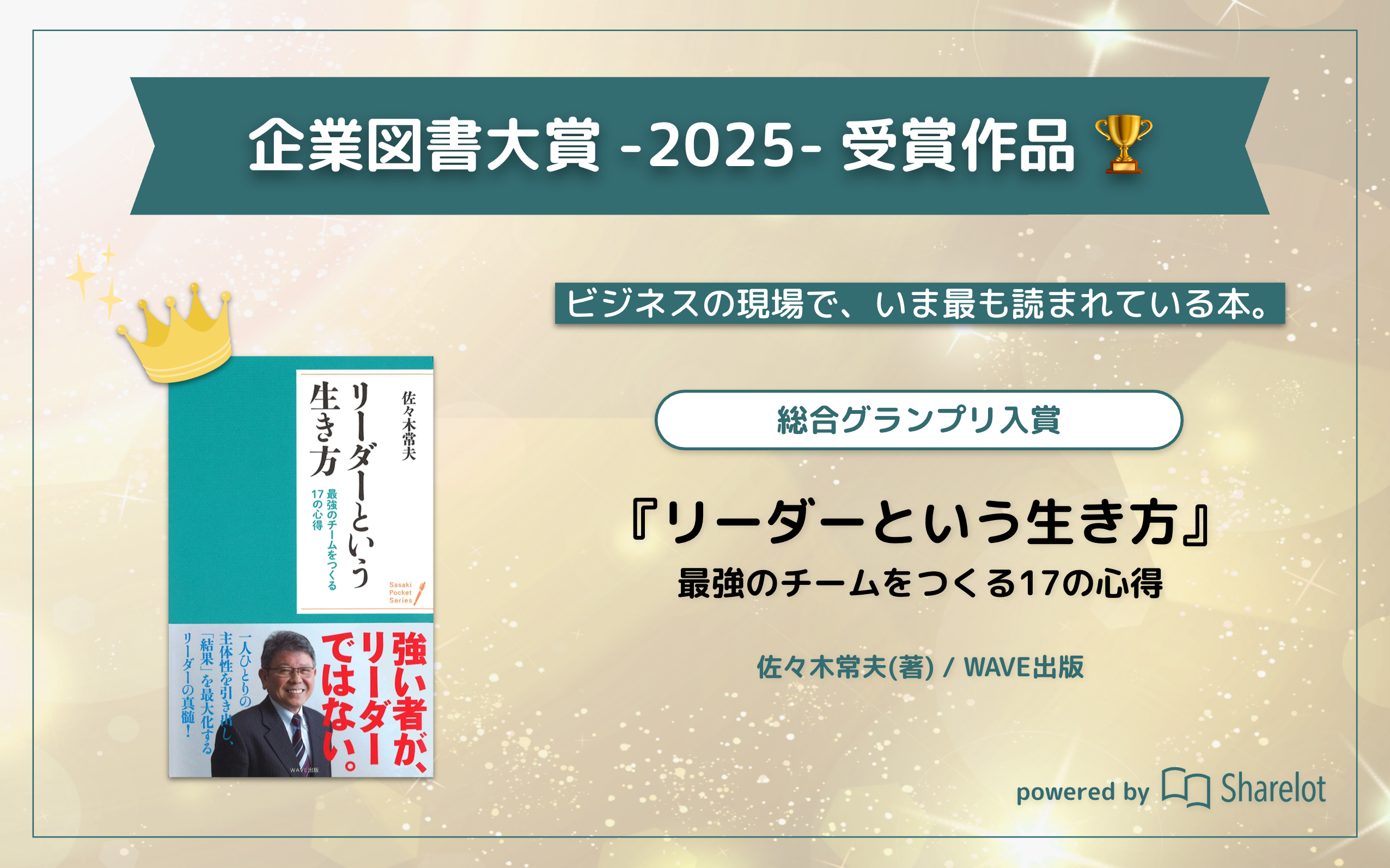 『リーダーという生き方』佐々木常夫 著「企業図書大賞-2025-」ビジネスの現場で、いま最も読まれている本総合グランプリTOP10にランクインしました。...