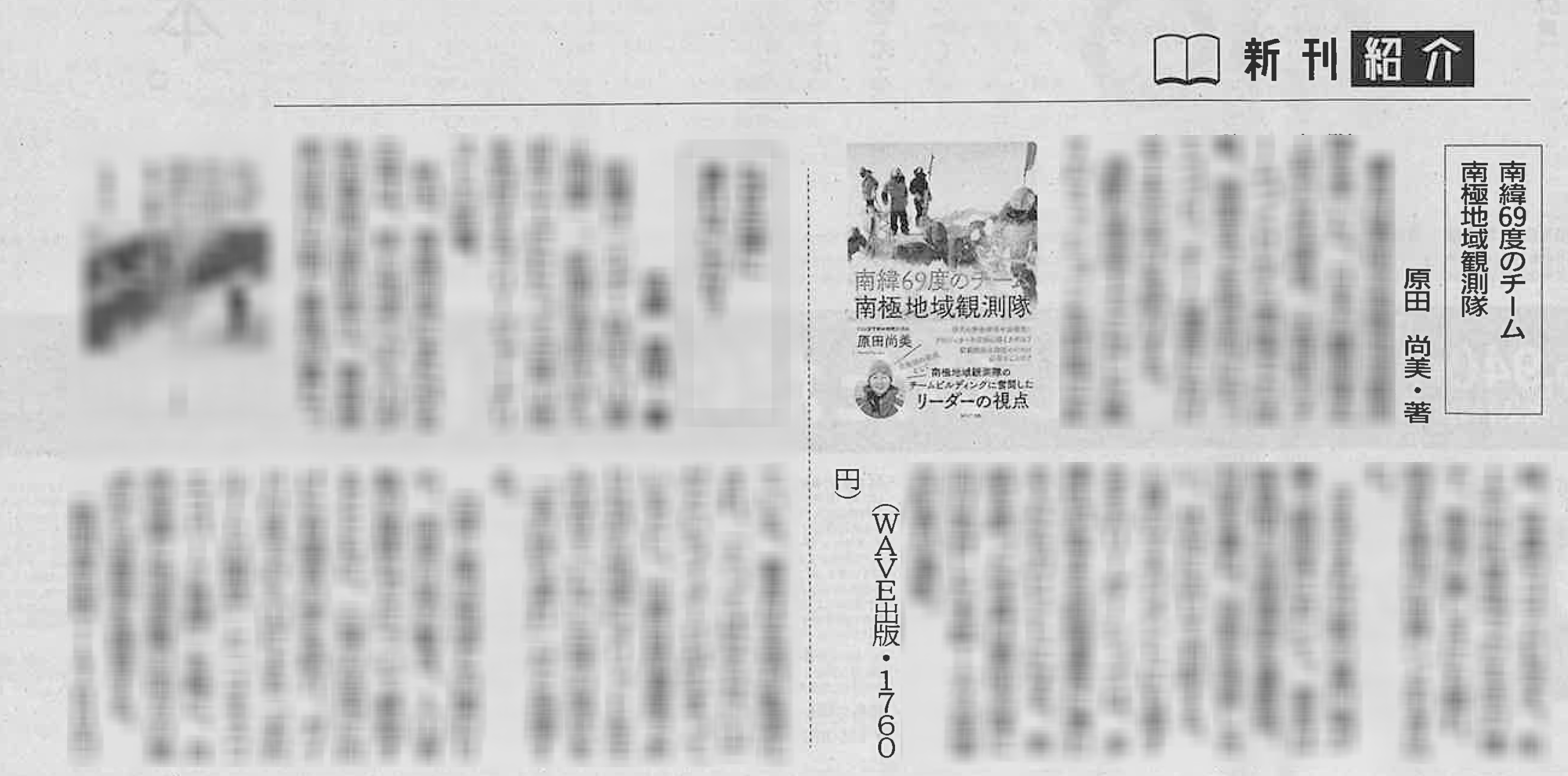 秋田魁新報様にて『南緯69度のチーム 南極地域観測隊』をご紹介いただきました